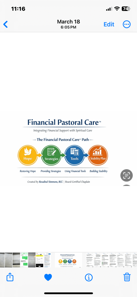Financial Chaplaincy is a faith-based, trauma-informed, financial care program that cares for the whole person. It is compassionate, yet structured money management training and coaching. Our interactive program provides actionable steps and proven strategies that meet people where they are.